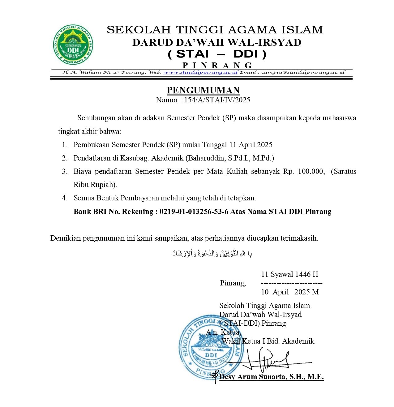 Semester pendek ini adalah kesempatan untuk mengambil mata kuliah tambahan atau memperbaiki nilai. Manfaatkan kesempatan ini sebaik-baiknya untuk terus berkembang dan meraih sukses akademik. Untuk lebih lengkapnya bisa mengakses link berikut PENGUMUMAN SP